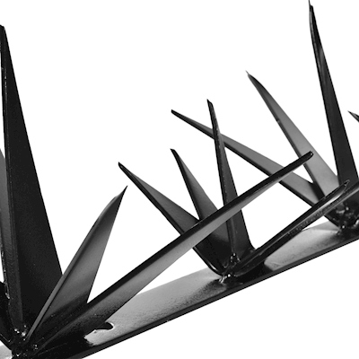 Protector para barda, cuenta con 5 grupos de púas grandes y 5 pequeños. Elaborado de acero con navajas punzocortantes para mayor seguridad del hogar, está recubierto con pintura electrostática para mayor resistencia a la intemperie. Sus dimensiones son 100 x 13 x 3.8 cm; se puede unir con otras piezas del mismo diseño.